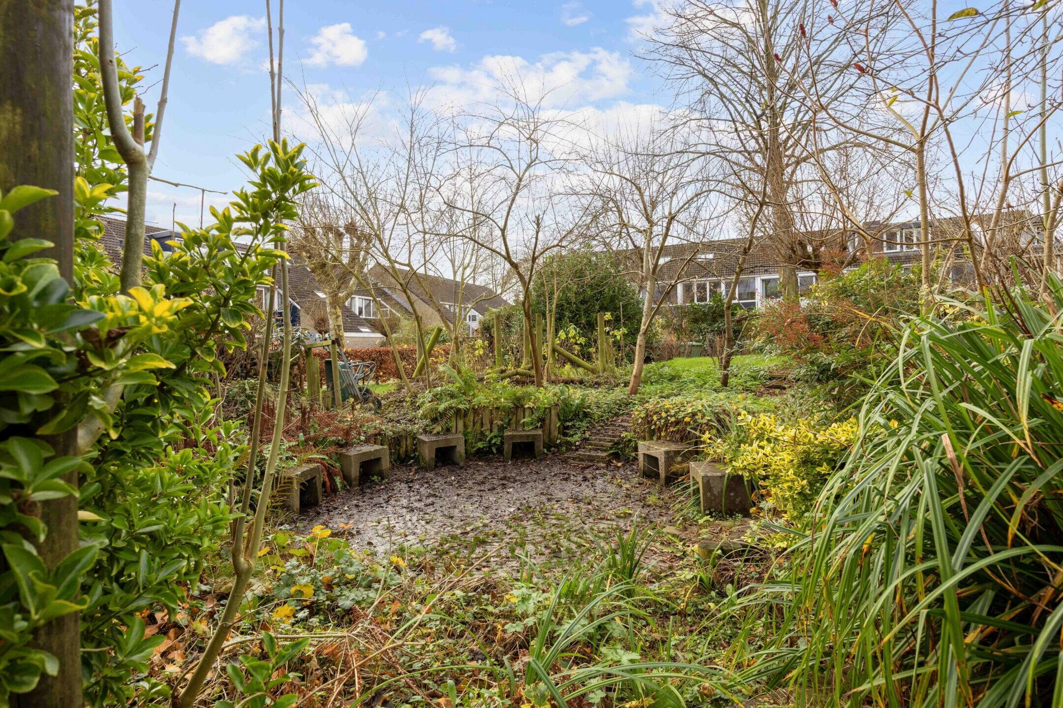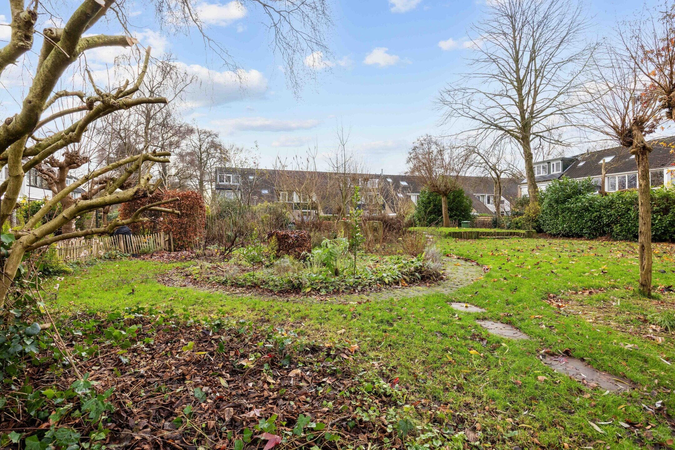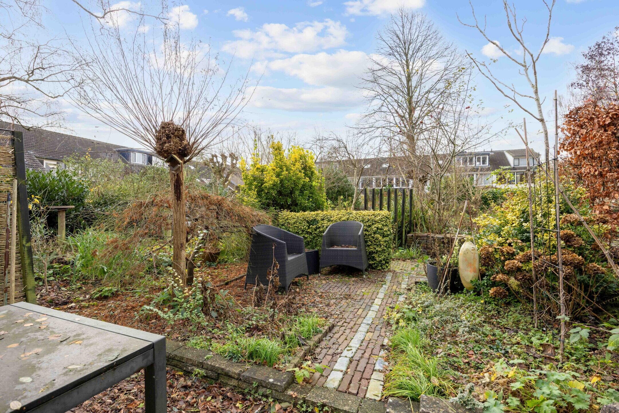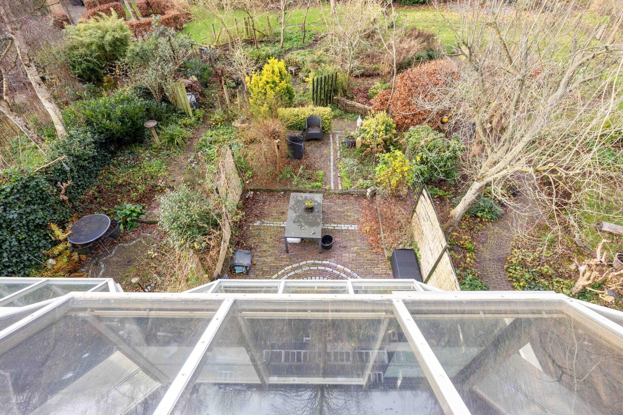 Voortuin is bescheiden en op oost, de achtertuin is ruim en ligt op het westen en zoals gezegd grenzend aan de binnentuin.